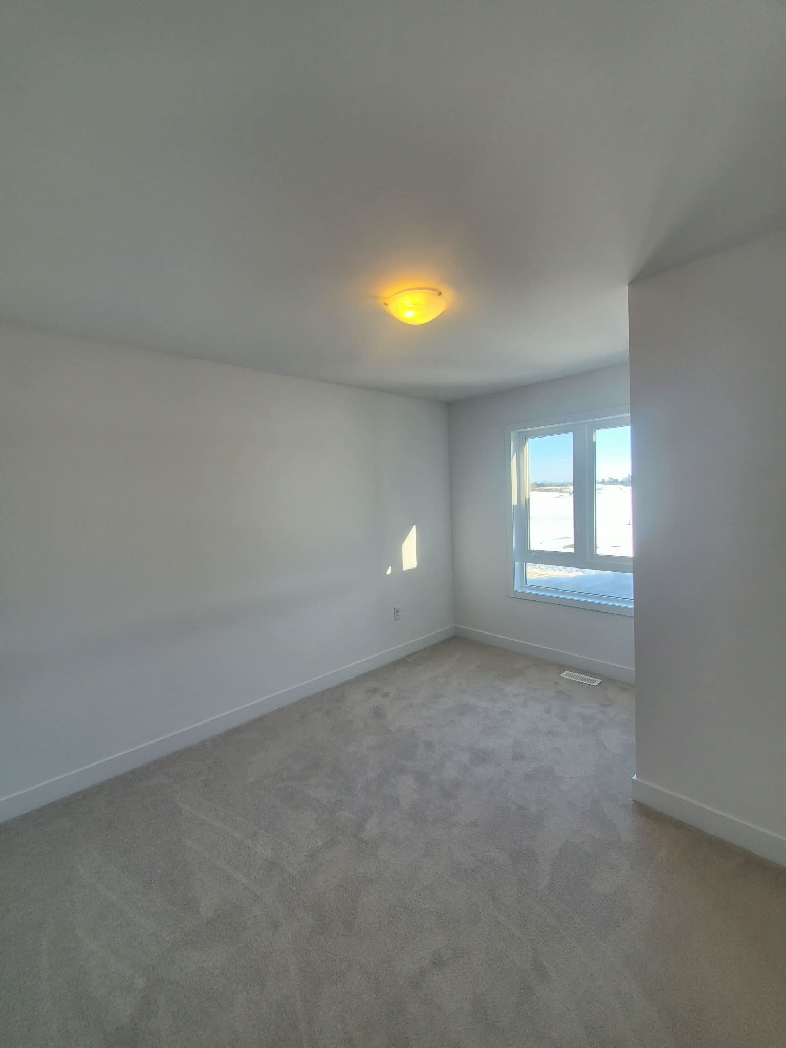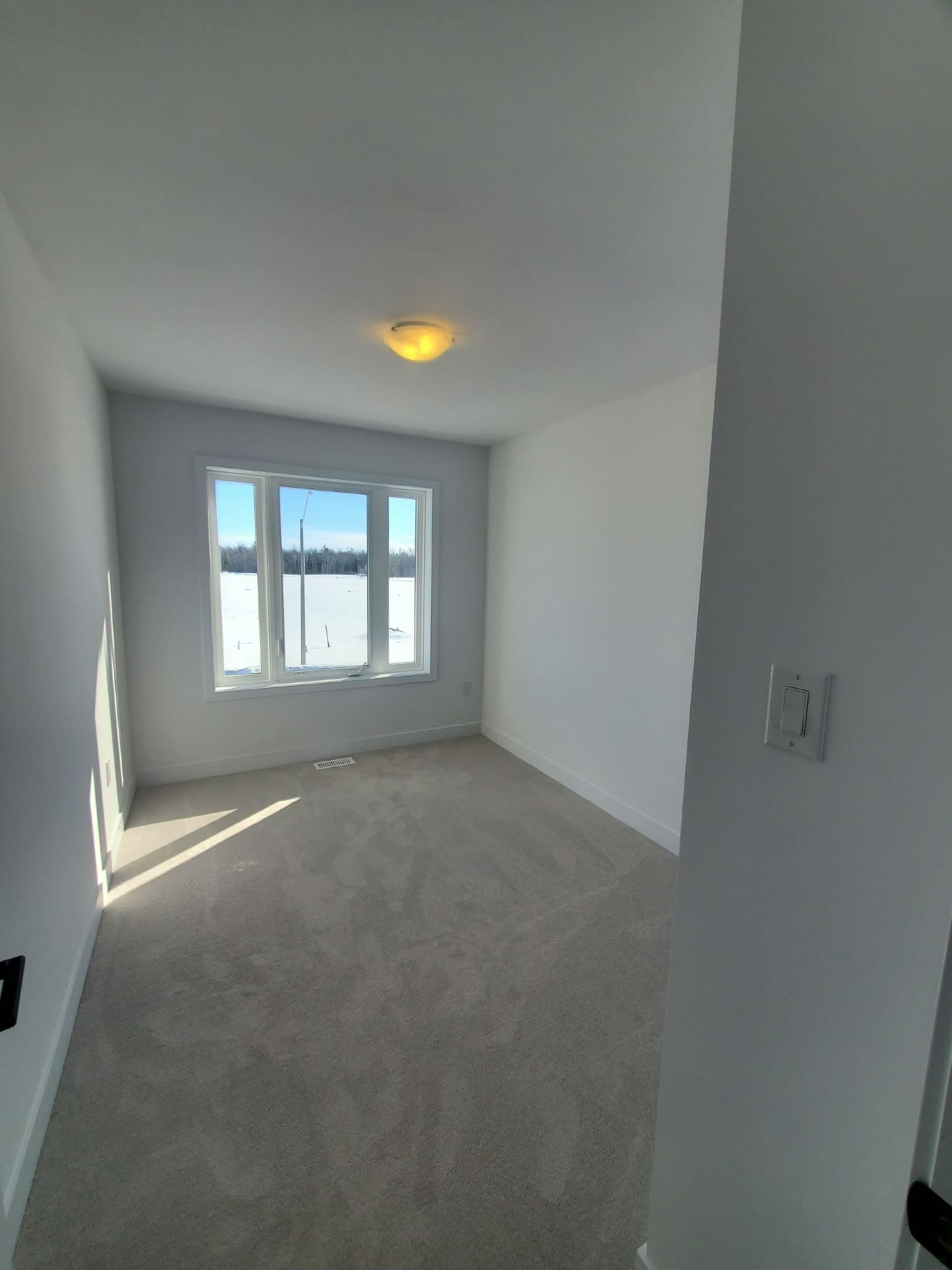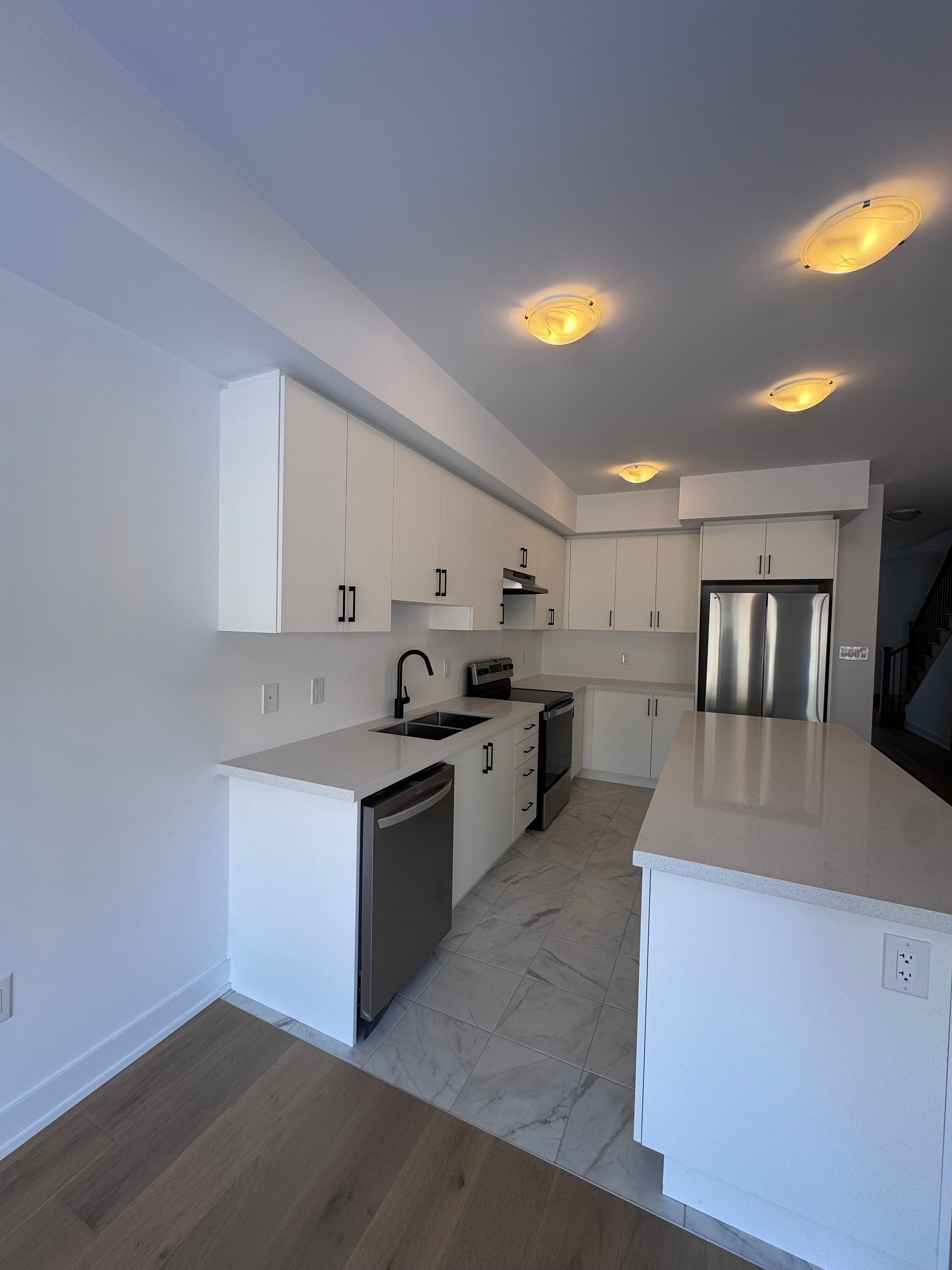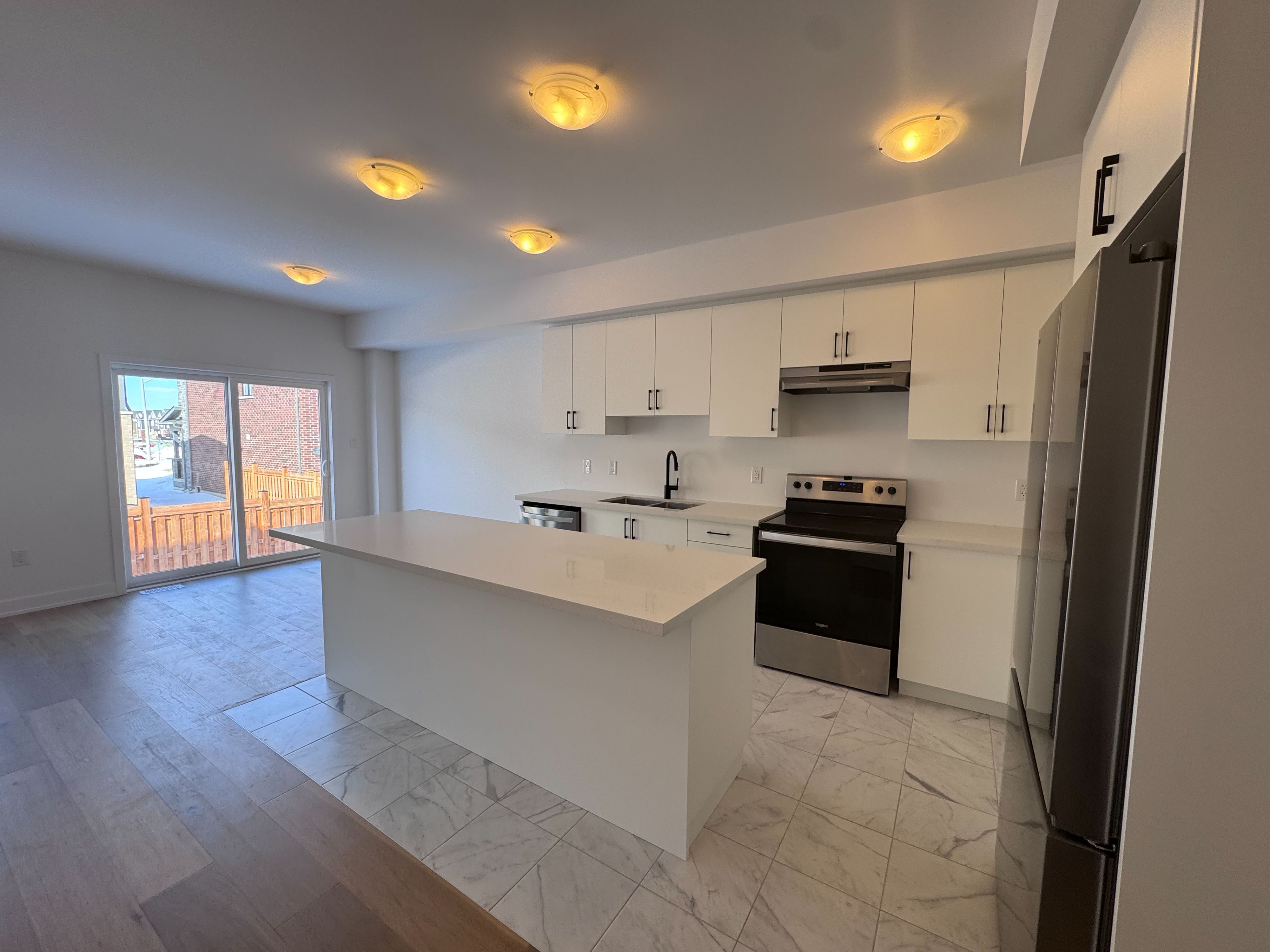 Brand New Never Lived 4 Bedroom freehold townhouse in new subdivision close to all amenities! Bright and Spacious 9' Ceilings and hardwood flooring throughout main. Modern kitchen with quartz countertop, large center island and stainless steel appliances. Oak Staircase. Spacious Primary Bedroom with Walk-In Closet and 5 Piece En-Suite, Glass Shower, Double Sinks. 2nd floor Laundry room for Convenience. Located To Highway, Shops, Restaurants, and Amenities.